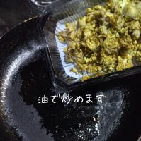 ふきのとうを刻みます。私は食感も楽しみたいので粗く刻みますが、気になる方は細かく刻んでください。(生のふきのとうを用いる場合は、時間の経過と共にアクで黒ずんでくるので、予めフライパンに油を敷いて弱火にしておきましょう。)